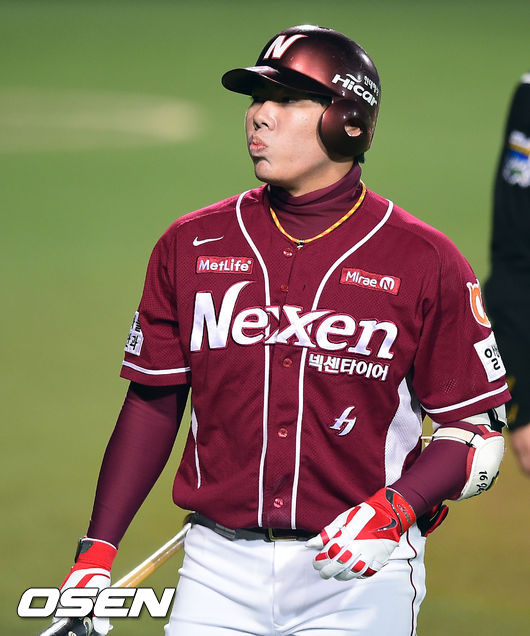 5일 오후 대구야구장에서 열린 2014 한국야쿠르트 세븐 프로야구 포스트시즌 한국시리즈 2차전, 2회초 넥센 강정호가 삼성 채태인의 호수비에 파울아웃 된 뒤 아쉬워하고 있다