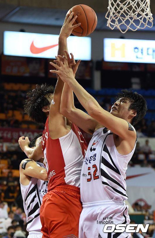 2쿼터 SK 박상오와 KT 김승원이 리바운드 다툼을 하고 있다.