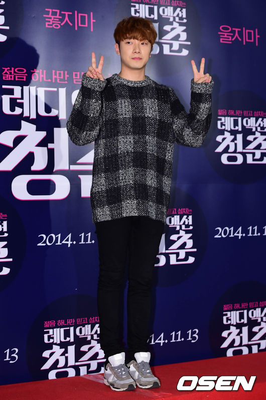 5일 오후 서울 롯데시네마 건대입구에서 열린 영화 '레디액션 청춘' VIP 시사회에서 최민환이 포토타임을 갖고 있다.
