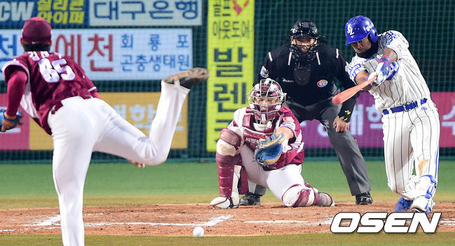 6회초 넥센 공격 2사 주자 없는 상황 나바로가 중전안타를 날리고 있다.
