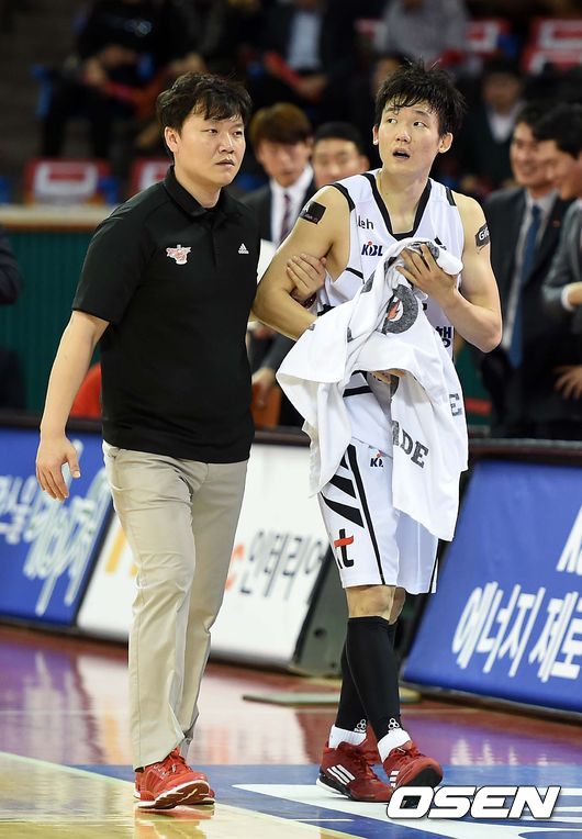 4쿼터 KT 김현수가 부상으로 코트를 나가고 있다. /sunday@osen.co.kr
