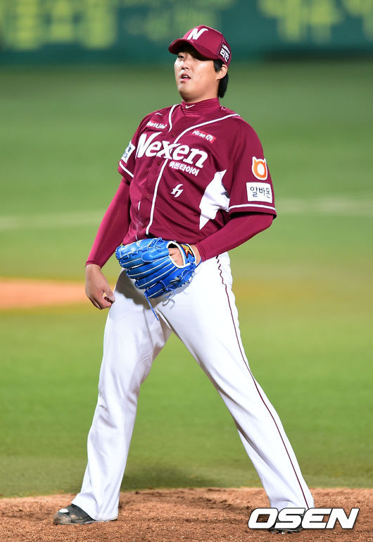 5일 오후 대구야구장에서 열린 2014 한국야쿠르트 세븐 프로야구 포스트시즌 한국시리즈 2차전,6회말 2사 1,2루 삼성 채태인에게 9구 끝에 볼넷을 허용한 넥센 김영민 투수가 아쉬워하고 있다.