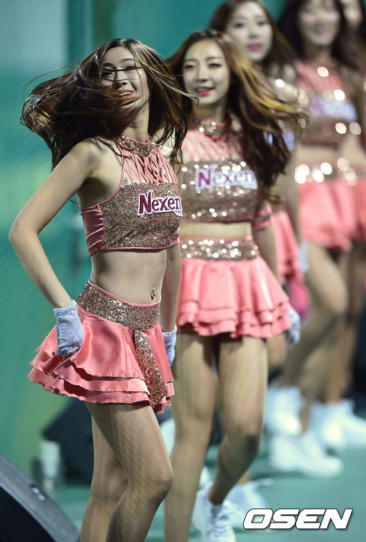 5일 오후 대구야구장에서 열린 2014 한국야쿠르트 세븐 프로야구 포스트시즌 한국시리즈 2차전,넥센 치어리더가 멋진 무대를 펼치고 있다.