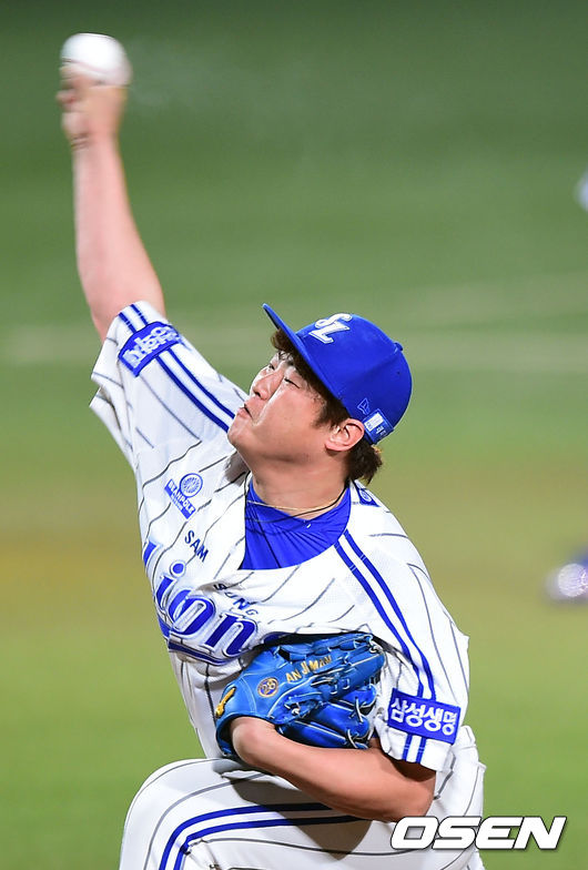 5일 오후 대구야구장에서 열린 2014 한국야쿠르트 세븐 프로야구 포스트시즌 한국시리즈 2차전,8회초 삼성 안지만 투수가 역투하고 있다