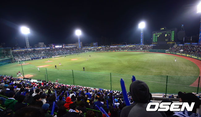5일 오후 대구야구장에서 열린 2014 한국야쿠르트 세븐 프로야구 포스트시즌 한국시리즈 2차전,만원관중으로 가득찬 대구구장.