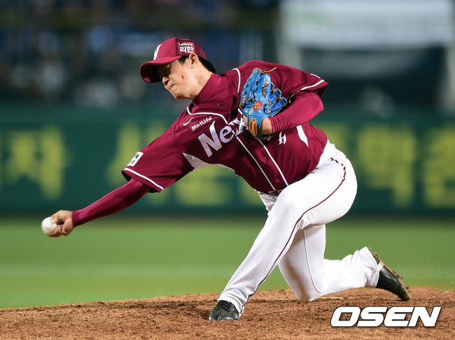 5일 오후 대구야구장에서 열린 2014 한국야쿠르트 세븐 프로야구 포스트시즌 한국시리즈 2차전, 3회 마운드에 오른 넥센 김대우가 역투하고 있다. 김대우는 3이닝동안 탈삼진 4개를 곁들여 1피안타 2볼넷 무실점으로 호투했다.