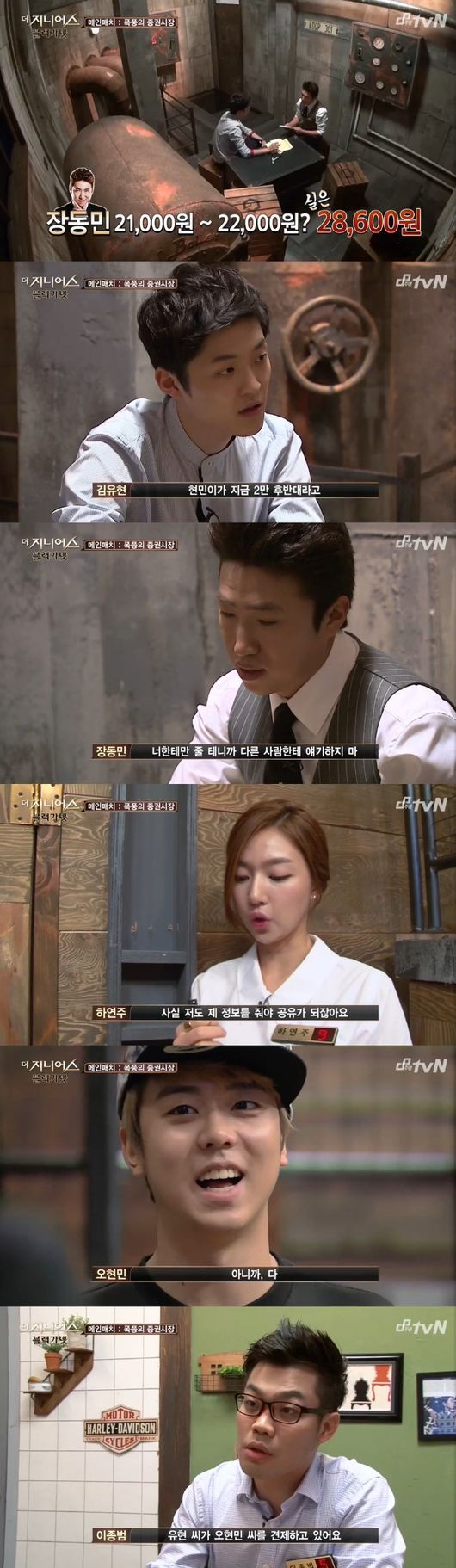 5일 오후 방송된 tvN 예능프로그램 '더 지니어스: 블랙 가넷'(이하 '더지니어스3') 6화에는 '폭풍의 주식시장‘이 메인매치 게임으로 펼쳐졌다. 이는 가상의 주식시장에서 주가 등락에 대한 정보를 모아 주식시장 마감까지 가장 많은 돈을 벌어야 하는 게임.