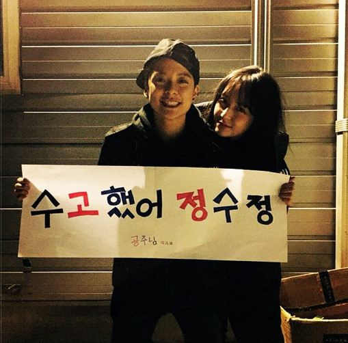 공개된 사진 속에는 ‘수고했어 정수정 공주님’이라고 적힌 자필 플래카드를 들고 뿌듯하게 미소 짓고 있는 엠버와 그의 뒤에 숨어 고개를 빼꼼히 내민 크리스탈의 모습이 보인다.