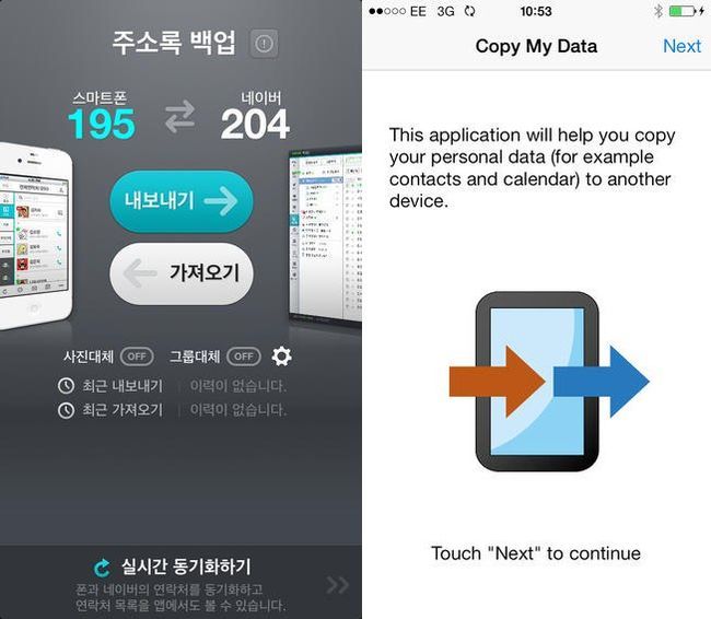 기존에 안드로이드에서 사용하던 앱도 아이폰으로 옮겨 쓸 수 있다. 'Copy My Data(카피 마이 데이터, 무료)'라는 앱을 이용하면 된다. 이 앱을 이용하면 무선인터넷을 통해 안드로이드 휴대폰에 있는 연락처와 캘린더를 옮겨올 수 있다.