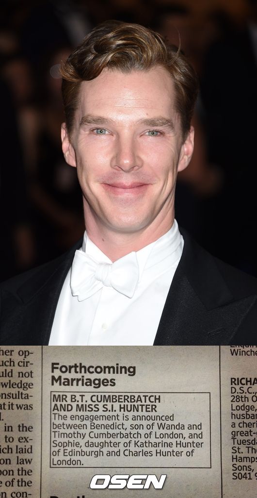 미국 연예 매체 스플래쉬에 따르면 지난 5일(현지시간)에 발행된 영국 런던 타임지 경조사란에는 베네딕트 컴버배치와 영화 제작자 겸 배우인 소피 헌터의 약혼 사실이 게재돼 있다.