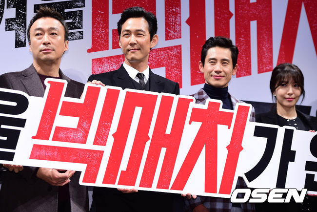 6일 오전 서울 강남구 CGV 압구정에서 열린 영화 '빅매치' 제작보고회에서 이성민(왼쪽부터), 이정재, 신하균, 보아가 포토타임을 갖고 있다.