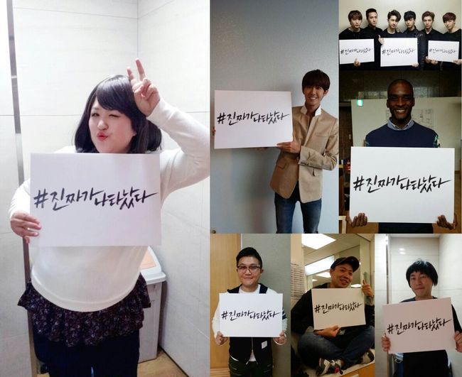 3일 JTBC '비정상회담' 등에 출연중인 가나 출신 유학생 방송인 샘 오취리가, 4일에는 빅스(VIXX)와 제국의 아이들 멤버 광희가 '진짜가 나타났다' 피켓을 들고 있는 사진에 이어 5일 오전에는 tvn '코미디 빅리그' 출연진 조세호, 이상준, 이진호 등도 '진짜가 나타났다'라는 피켓을 든 사진이 각종 온라인 게시판과 SNS에 등장해 눈길을 모으며 누리꾼들의 궁금증을 증폭시켰다.