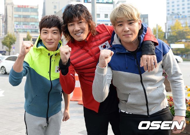 가수 김장훈과 슈퍼주니어 이특, 강인이 6일 서울 신촌로에서 거리 달리기를 벌여 시민들의 시선을 사로잡았다.