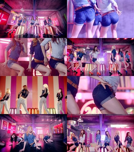 ‘끈적끈적’ 뮤직비디오 속 헬로비너스는 타이트한 청셔츠, 핫팬츠와 하이힐을 신고 등장해 건강미 넘치는 몸매를 드러냈다. 이어진 장면에서는 볼륨감을 강조한 시스루 레이스 상의와 체크무늬 레깅스로 노출 없이도 섹시한 매력을 뽐냈다.