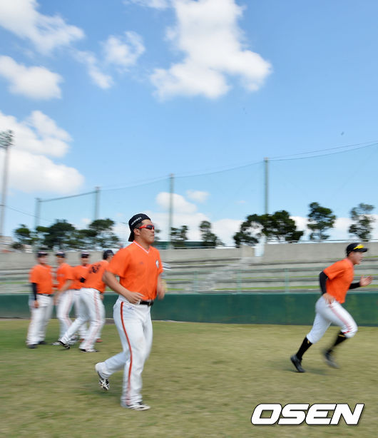 6일 오전 일본 오키나와 고친다 구장에서 한화 이글스 2014 마무리 캠프가 진행됐다. 정근우가 러닝훈련을 하고 있다.