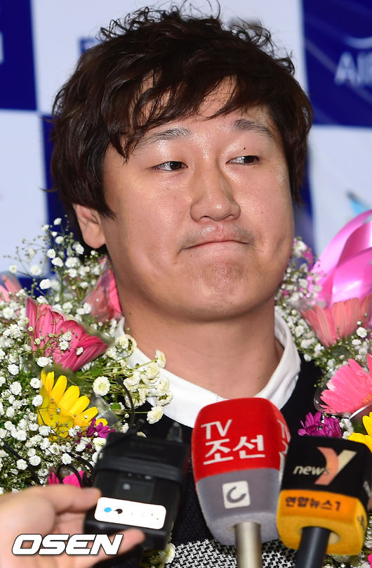 생애 첫 정규시즌 우승과 재팬시리즈 우승을 한 소프트뱅크 호크스의 이대호가 6일 가족과 함께 부산 김해국제공항을 통해 귀국했다.