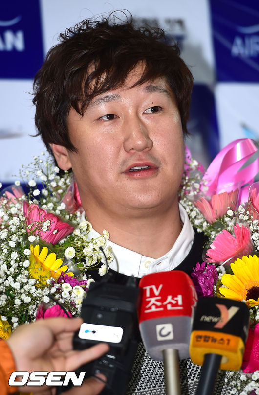 생애 첫 정규시즌 우승과 재팬시리즈 우승을 한 소프트뱅크 호크스의 이대호가 6일 가족과 함께 부산 김해국제공항을 통해 귀국했다.