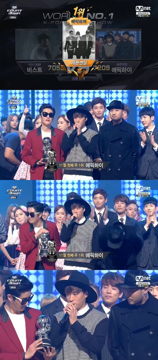 에픽하이는 6일 방송된 Mnet '엠카운트다운'에서 그룹 비스트의 '12시 30분'을 제치고 트로피를 거머쥐었다.