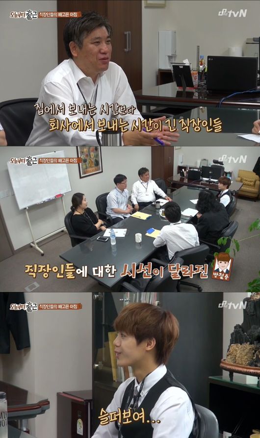 한편 '오늘부터 출근'은 외식 프랜차이즈로 출근하는 백두산 김도균, 엠블랙 미르, 카라 박규리, 홍진호, 장난감 제조업체에 출근하는 god 박준형, 배우 봉태규, 은지원, JK김동욱이 신입사원으로 겪게되는 성장기를 총 5회 동안 그려진다. 매주 목요일 오후 11시 방송.