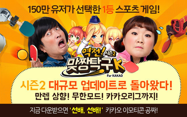 아프리카TV는 실시간 스포츠 대전 게임 ‘역전! 맞짱탁구K for Kakao’에서 시즌2 업데이트를 실시했다고 7일 밝혔다.