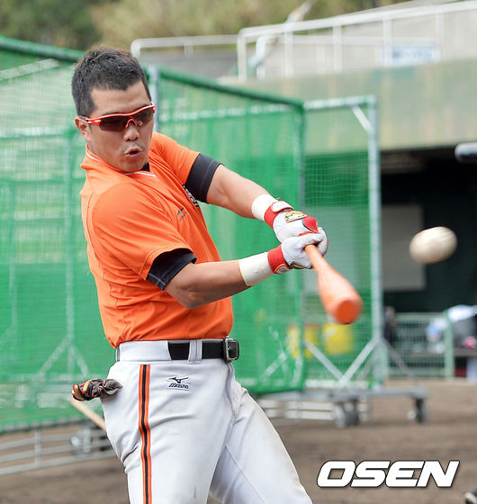 7일 오전 일본 오키나와 고친다 구장에서 한화 이글스 2014 마무리 캠프가 진행됐다. 정근우가 타격훈련을 하고 있다.