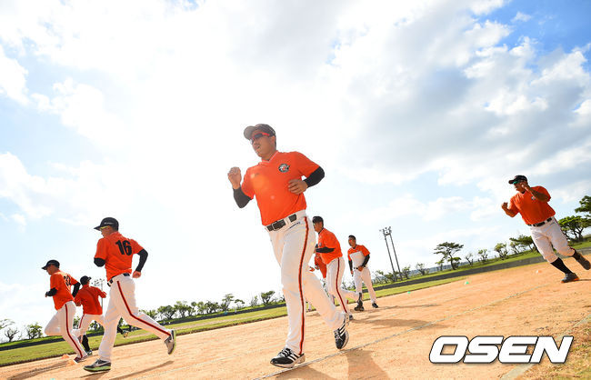 7일 오전 일본 오키나와 고친다 구장에서 한화 이글스 2014 마무리 캠프가 진행됐다. 정근우가 런닝 훈련을 하고 있다.