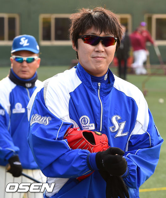 7일 오후 서울 목동야구장에서 열린 '2014 한국야쿠르트 세븐 프로야구 포스트시즌' 삼성 라이온즈와 넥센 히어로즈의 한국시리즈 3차전에 앞서 삼성 배영수가 미소 짓고 있다.