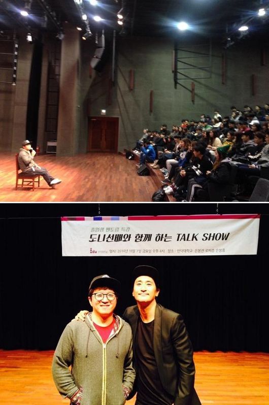 공개된 사진 속에는 인덕대학교 후배들에게 강연을 하고 있는 정현돈의 모습이 담겨있다. 이어 공개된 사진에서는 스냅백을 쓴 채 편한 차림을 한 정형돈과 블랙 패션으로 멋을 낸 신현준이 다정한 포즈를 취하고 있어 눈길을 끌었다.