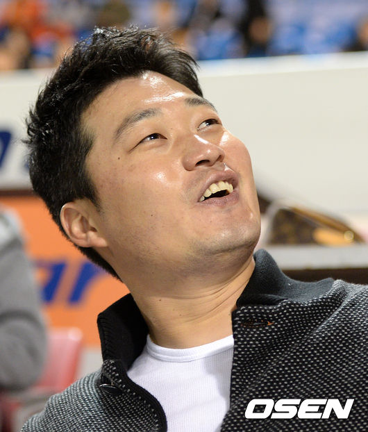 7일 오후 서울 목동야구장에서 열린 '2014 한국야쿠르트 세븐 프로야구 포스트시즌' 넥센 히어로즈와 삼성 라이온즈의 한국시리즈 3차전, 경기에 앞서 한신 타이거즈 오승환이 야구장을 찾아 경기를 관전하고 있다.