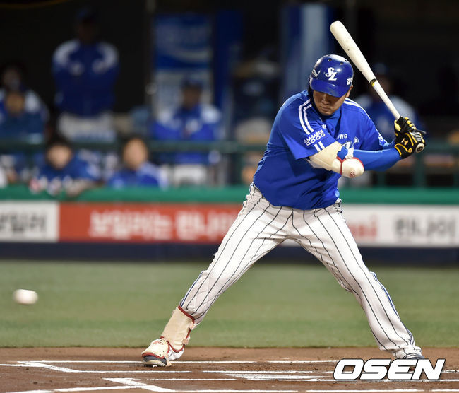 7일 오후 서울 목동야구장에서 열린 '2014 한국야쿠르트 세븐 프로야구 포스트시즌' 넥센 히어로즈와 삼성 라이온즈의 한국시리즈 3차전,1회초 2사 채태인이 볼넷을 골라내고 있다.
