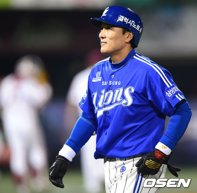 7일 오후 서울 목동야구장에서 열린 '2014 한국야쿠르트 세븐 프로야구 포스트시즌' 넥센 히어로즈와 삼성 라이온즈의 한국시리즈 3차전 경기,1회초 2사 만루 삼성 이승엽이 외야플라이로 찬스를 놓친 후 아쉬워하고 있다.
