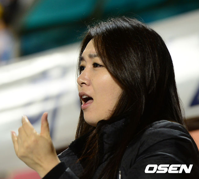 7일 오후 서울 목동야구장에서 열린 '2014 한국야쿠르트 세븐 프로야구 포스트시즌' 넥센 히어로즈와 삼성 라이온즈의 한국시리즈 3차전, 1회초 삼성 박한이 아내 조명진씨가 경기를 관전하고 있다.