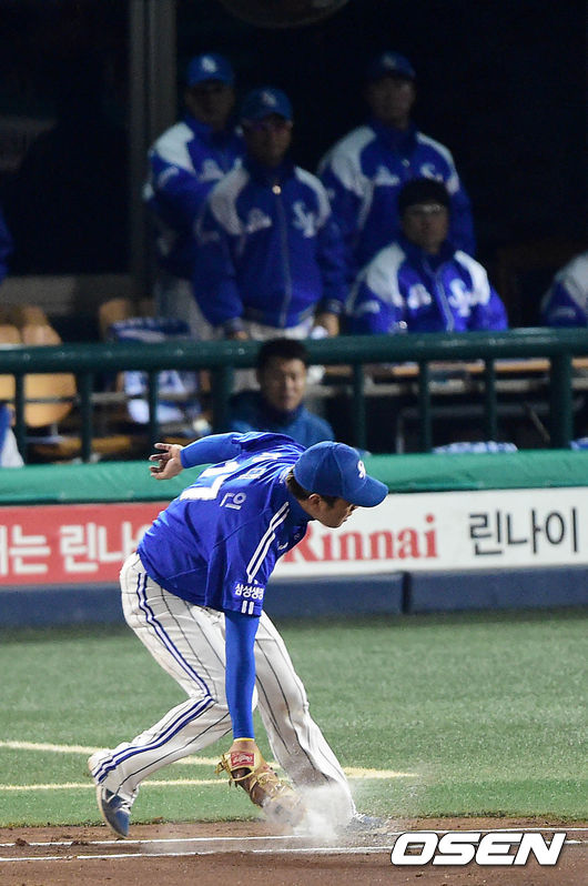 3회말 넥센 공격 2사 주자없는 상황 삼성 1루수 채태인이 서건창의 내야 땅볼 타구를 잡아내고 있다.