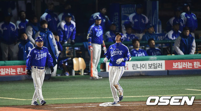 4회초 삼성 공격 2사 1, 3루 상황 김상수가 외야플라이를 날리고 아쉬워하고 있다.