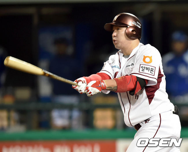 7일 오후 서울 목동야구장에서 열린 '2014 한국야쿠르트 세븐 프로야구 포스트시즌' 넥센 히어로즈와 삼성 라이온즈의 한국시리즈 3차전, 4회말 1사 1루 박병호의 타구가 좌익수 플라이가 되고 있다.