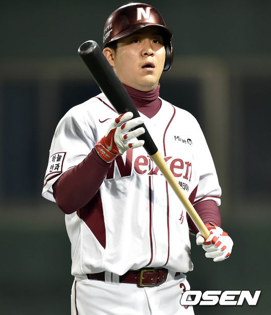7일 오후 서울 목동야구장에서 열린 '2014 한국야쿠르트 세븐 프로야구 포스트시즌' 넥센 히어로즈와 삼성 라이온즈의 한국시리즈 3차전, 4회말 2사 1,2루 삼진 당한 김민성이 아쉬워하고 있다.