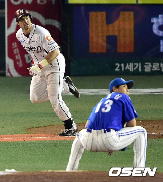 5회말 넥센 공격 1사 주자없는 상황 로티노가 삼성 선발 장원삼을 상대로 선제 좌월 솔로포를 터트리고 타구를 바라보며 뛰고 있다.