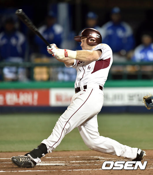 7일 오후 서울 목동야구장에서 열린 '2014 한국야쿠르트 세븐 프로야구 포스트시즌' 넥센 히어로즈와 삼성 라이온즈의 한국시리즈 3차전, 5회말 1사 로티노가 솔로홈런을 치고 있다.