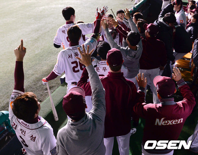 기뻐하는 넥센,'로티노가 솔로 홈런을 때렸어!'
