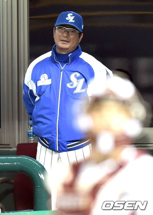 7일 오후 서울 목동야구장에서 열린 '2014 한국야쿠르트 세븐 프로야구 포스트시즌' 넥센 히어로즈와 삼성 라이온즈의 한국시리즈 3차전, 6회초 2사 1루 김현곤 타석, 류중일 감독이 구심이 낮은볼을 스트라이크로 선언하자 난감한 표정을 짓고 있다.