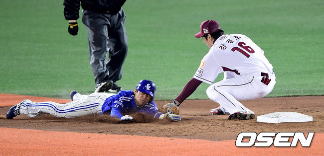 동점 찬스 사라지는 김상수의 2루 도루 실패