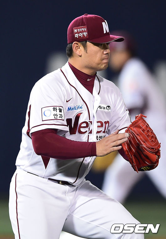 7일 오후 서울 목동야구장에서 열린 '2014 한국야쿠르트 세븐 프로야구 포스트시즌' 넥센 히어로즈와 삼성 라이온즈의 한국시리즈 3차전 경기,7회초 위기를 넘긴 넥센 손승락 투수가 환호하고 있다.