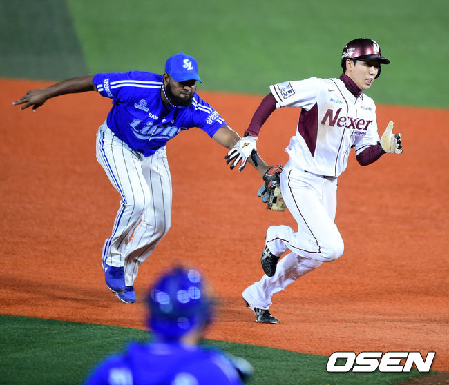 삼성-넥센 한국시리즈 3차, 대주자 유재신, '견제에 걸리다니'