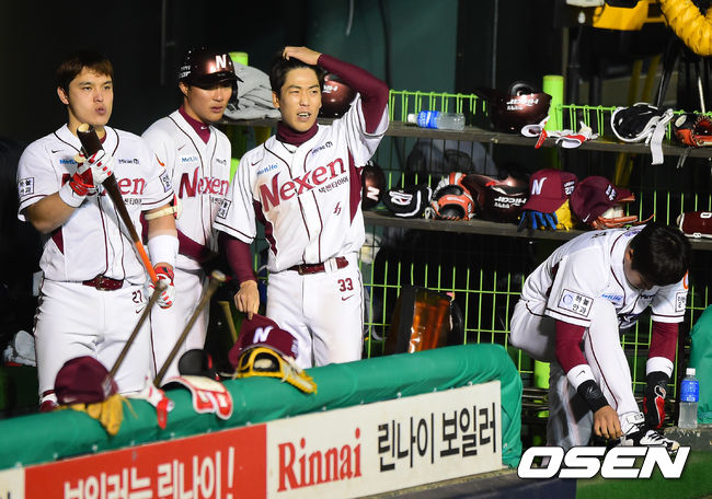 7일 오후 서울 목동야구장에서 열린 '2014 한국야쿠르트 세븐 프로야구 포스트시즌' 넥센 히어로즈와 삼성 라이온즈의 한국시리즈 3차전, 7회말 1사 1루에서 넥센 유재신이 삼성 안지만의 견제에 걸려 나바로에 태그아웃당하며 더그아웃에서 아쉬워하고 있다.