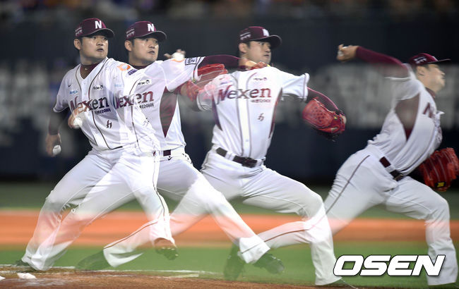 7일 오후 서울 목동야구장에서 열린 '2014 한국야쿠르트 세븐 프로야구 포스트시즌' 넥센 히어로즈와 삼성 라이온즈의 한국시리즈 3차전,8회초 손승락이 마운드에 올라 힘차게 공을 던지고 있다.