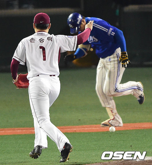 8회초 삼성 공격 선두타자로 나선 채태인을 넥센 투수 손승락이 내야 땅볼로 처리하고 있다.