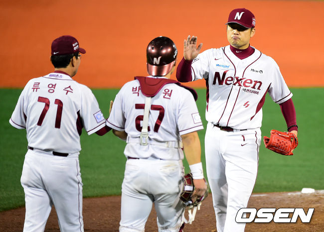 7일 오후 서울 목동야구장에서 열린 '2014 한국야쿠르트 세븐 프로야구 포스트시즌' 넥센 히어로즈와 삼성 라이온즈의 한국시리즈 3차전, 9회초 2사에서 넥센 손승락이 마운드를 내려가고 있다.