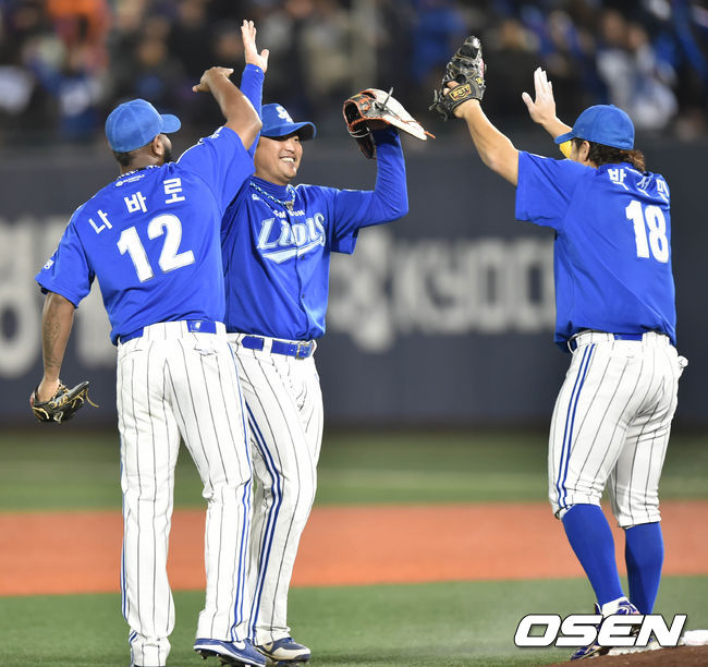 승리한 삼성 선수들이 기쁨을 나누고 있다./spjj@osen.co.kr