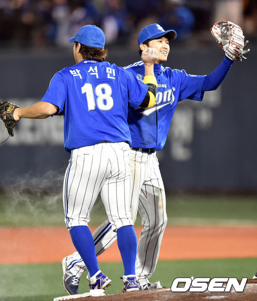 승리한 삼성 선수들이 기쁨을 나누고 있다./spjj@osen.co.kr