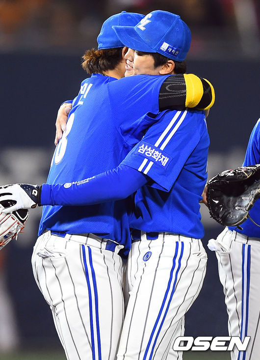 경기종료 후 삼성 선수들이 기뻐하고 있다. /soul1014@osen.co.kr